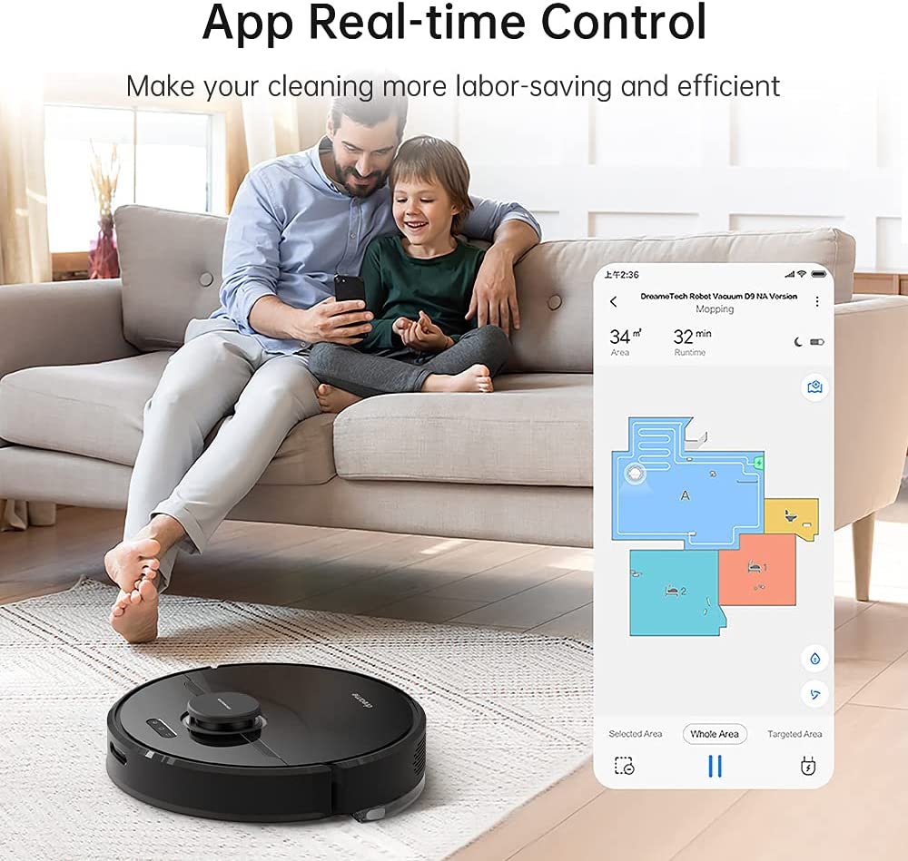 Dreametech D9 Robot Vacuum and Mop Cleaner, Lidar Navigation Robot Vacuum Sweep and Mop 2-in-1, 3000Pa Strong Suction Power, 150min Runtime, Compatible with Alexa, Smart Mapping for Carpet, Hard Floor