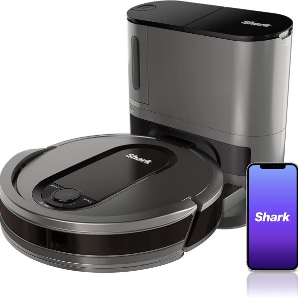 Shark AV911S EZ Robot Vacuum with Self-Empty Base, Bagless, Row-by-Row Cleaning, Perfect for Pet Hair, Compatible with Alexa, Wi-Fi, Gray